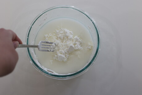 Use a funnel to pour the oobleck into a balloon to make a mini stress ball. Make sure there’s no air in the balloon before tying it tight.