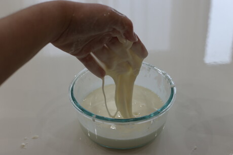 Oobleck is a strange substance between a solid and a liquid. If you punch it, it feels solid, but if you scoop some into your hand, it will soften and pour out like a liquid. In the story, the water was solid when Peter had faith in Jesus. But when Peter focused on the storm instead, he sank into the water. Play around with your oobleck while thinking of Peter’s experience and how you can grow your faith.