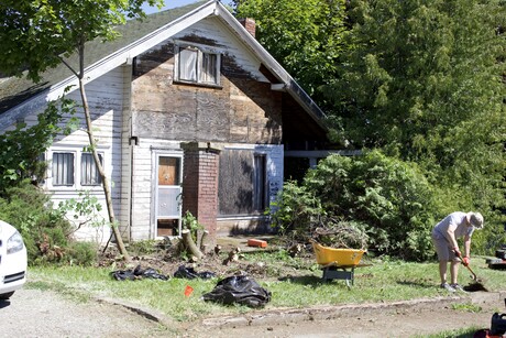 The Serve One More project during camp meeting involved removing overgrowth from the front of a home in a nearby community.