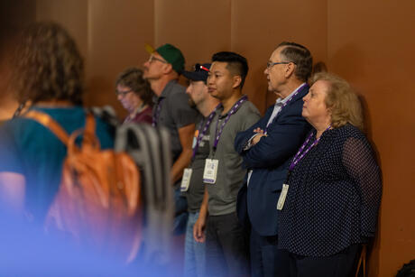 They listened — fairly well — to reminders to stay hydrated, check the event app for schedule updates, line up in an approximate single file line to flow into a massive dining hall, speaker prompts for “elbow partner” discussions and finally to quiet-down prompts to rejoin the keynote sessions.