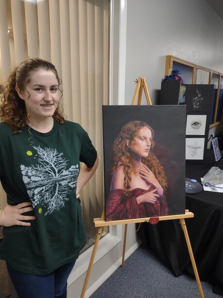 Several students in particular completed exceptional paintings and art pieces. Abrianna Drake’s painting, “Helping Hands,” stood out, as did Grace Mirra’s, “Passion’s Summer Breeze.” Alivia Thomas’ portrait, “The Scarlet Lady,” was truly stunning and took untold hours to complete.