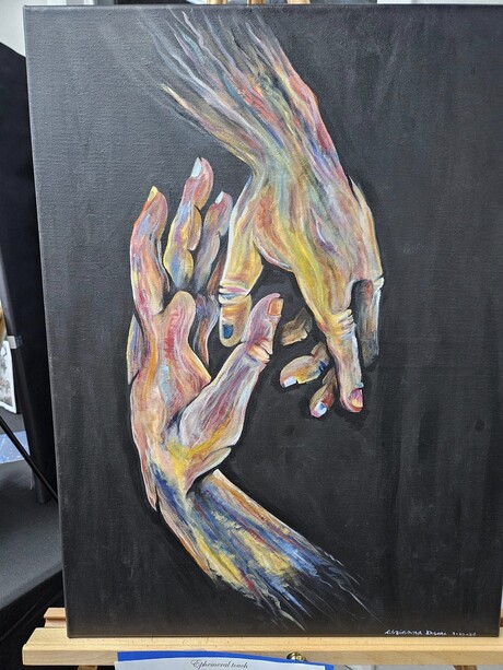 Abrianna Drake’s painting, “Helping Hands,” is showcased at GSAA’s Art Show.